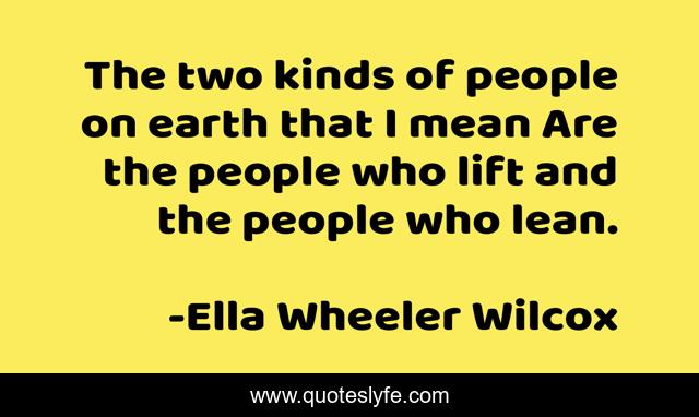 This page presents the quote "The two kinds of people on earth that I mean Are the people who lift and the people who lean.". Author of this quote is Ella Wheeler Wilcox. .