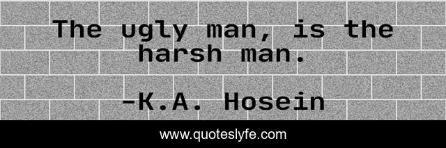 This page presents the quote "The ugly man, is the harsh man.". Author of this quote is K.A. Hosein. .