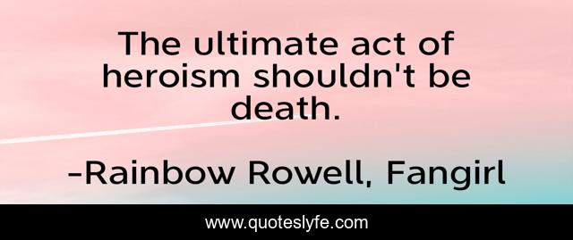 This page presents the quote "The ultimate act of heroism shouldn't be death.". Author of this quote is Rainbow Rowell, Fangirl. This quote is about hero, bravery,.