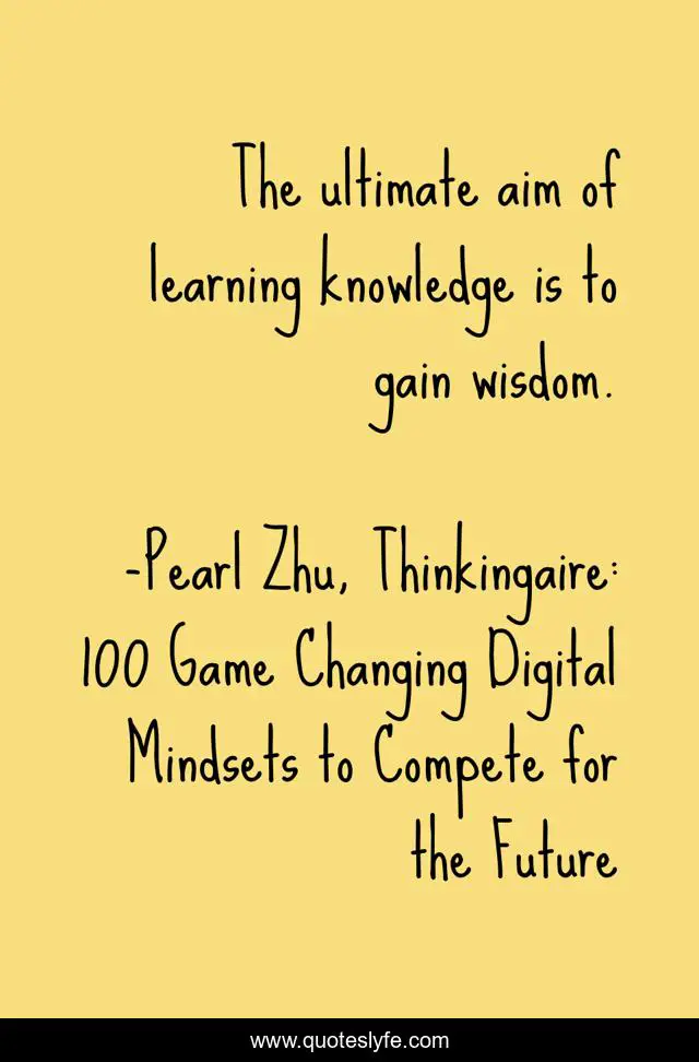 This page presents the quote "The ultimate aim of learning knowledge is to gain wisdom.". Author of this quote is Pearl Zhu, Thinkingaire: 100 Game Changing Digital Mindsets to Compete for the Future. This quote is about thinking, learning, wisdom,.