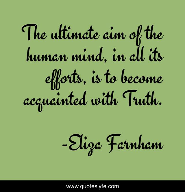 This page presents the quote "The ultimate aim of the human mind, in all its efforts, is to become acquainted with Truth.". Author of this quote is Eliza Farnham. This quote is about aim, mind, human,.