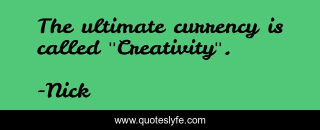 "Nick Quotes." Quoteslyfe.com, 2025. Fri. 05 Dec. 2025. <https://www.quoteslyfe.com/quote/The-ultimate-currency-is-called-Creativity-33083>.