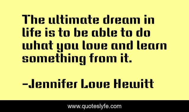 This page presents the quote "The ultimate dream in life is to be able to do what you love and learn something from it.". Author of this quote is Jennifer Love Hewitt. This quote is about life, do what you love,.