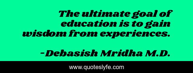 This page presents the quote "The ultimate goal of education is to gain wisdom from experiences.". Author of this quote is Debasish Mridha M.D.. This quote is about gain-wisdom, philosophy, experiencesdebasish-mridha, quotes, inspirational, goal-of-education, enthusiasm, education, debasish-mridha-m-d,.