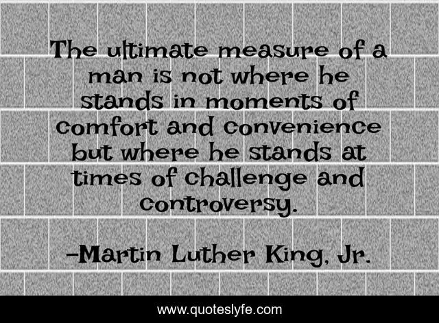 This page presents the quote "The ultimate measure of a man is not where he stands in moments of comfort and convenience but where he stands at times of challenge and controversy.". Author of this quote is Martin Luther King, Jr.. .