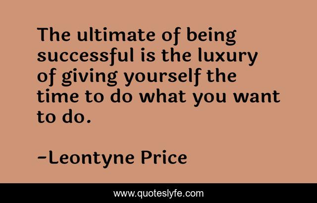 This page presents the quote "The ultimate of being successful is the luxury of giving yourself the time to do what you want to do.". Author of this quote is Leontyne Price. .