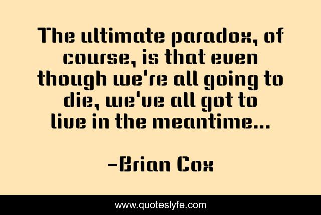 This page presents the quote "The ultimate paradox, of course, is that even though we're all going to die, we've all got to live in the meantime…". Author of this quote is Brian Cox. .
