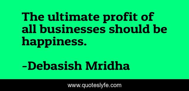 This page presents the quote "The ultimate profit of all businesses should be happiness.". Author of this quote is Debasish Mridha. This quote is about philosophy, debasish-mridha, debasish-mridha-m-d, quotes, business-profits, inspirational, enthusiasm, ultimate-profit-is-happiness, happiness,.