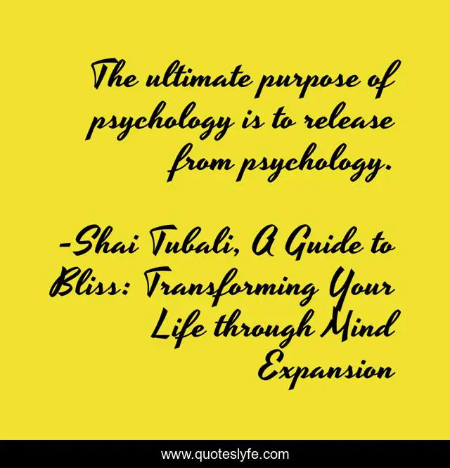 "Shai Tubali, A Guide to Bliss: Transforming Your Life through Mind Expansion Quotes." Quoteslyfe.com, 2025. Fri. 05 Dec. 2025. <https://www.quoteslyfe.com/quote/The-ultimate-purpose-of-psychology-is-to-103364>.