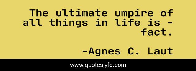 This page presents the quote "The ultimate umpire of all things in life is - fact.". Author of this quote is Agnes C. Laut. This quote is about failures, mistakes,.
