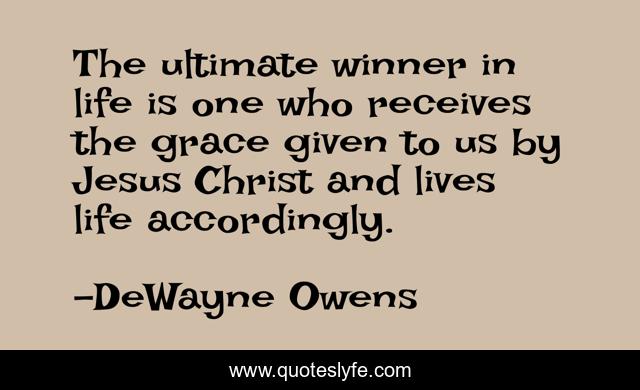 This page presents the quote "The ultimate winner in life is one who receives the grace given to us by Jesus Christ and lives life accordingly.". Author of this quote is DeWayne Owens. This quote is about jesus-christ, spiritual, life-lessons, motivational-inspirational, motivational, confidence, inspirational-life, wisdom, spirituality,.