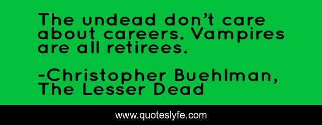 This page presents the quote "The undead don’t care about careers. Vampires are all retirees.". Author of this quote is Christopher Buehlman, The Lesser Dead. This quote is about undead, retirees, vampires,.