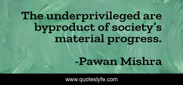 This page presents the quote "The underprivileged are byproduct of society’s material progress.". Author of this quote is Pawan Mishra. This quote is about underprivileged, poor-people, deprived, helping-others, society, charity-work, byproduct, materialistic-society, progress,.