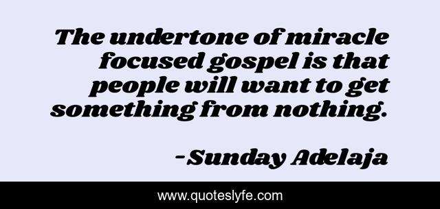 This page presents the quote "The undertone of miracle focused gospel is that people will want to get something from nothing.". Author of this quote is Sunday Adelaja. This quote is about miracles, miracle, people,.