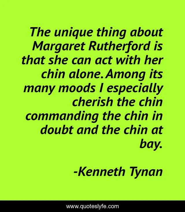 This page presents the quote "The unique thing about Margaret Rutherford is that she can act with her chin alone. Among its many moods I especially cherish the chin commanding the chin in doubt and the chin at bay.". Author of this quote is Kenneth Tynan. This quote is about acting, theatre,.