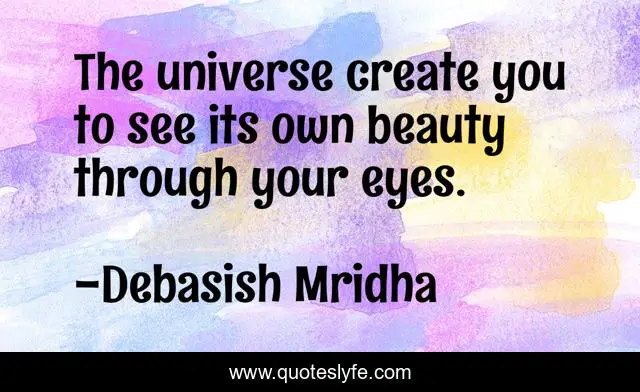 This page presents the quote "The universe create you to see its own beauty through your eyes.". Author of this quote is Debasish Mridha. This quote is about life, beauty, mridha, create, philosophy, creation-debasish, universe,.