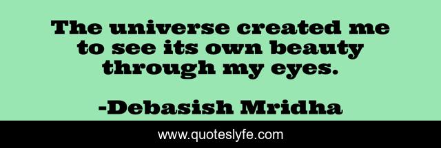 This page presents the quote "The universe created me to see its own beauty through my eyes.". Author of this quote is Debasish Mridha. This quote is about life, creation, beauty, mridha, create, debasish, universe, philosophy,.