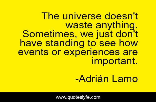 This page presents the quote "The universe doesn't waste anything. Sometimes, we just don't have standing to see how events or experiences are important.". Author of this quote is Adrián Lamo. This quote is about life, adrian-lamo, timeline, philosophy, universe, life-evaluating, philosophy-of-life, life-events,.