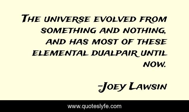 This page presents the quote "The universe evolved from something and nothing, and has most of these elemental dualpair until now.". Author of this quote is Joey Lawsin. .