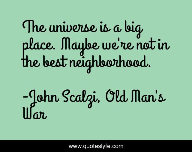 This page presents the quote "The universe is a big place. Maybe we're not in the best neighborhood.". Author of this quote is John Scalzi, Old Man's War. This quote is about big, neighborhood, place, best, universe,.