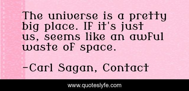 "Carl Sagan, Contact Quotes." Quoteslyfe.com, 2025. Fri. 05 Dec. 2025. <https://www.quoteslyfe.com/quote/The-universe-is-a-pretty-big-place-169602>.