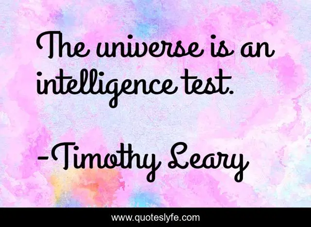 This page presents the quote "The universe is an intelligence test.". Author of this quote is Timothy Leary. This quote is about test, universe,.