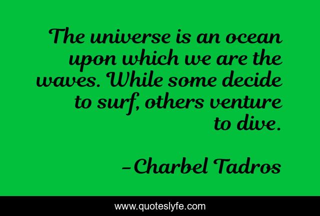 This page presents the quote "The universe is an ocean upon which we are the waves. While some decide to surf, others venture to dive.". Author of this quote is Charbel Tadros. This quote is about universe, life, waves, wisdom,.