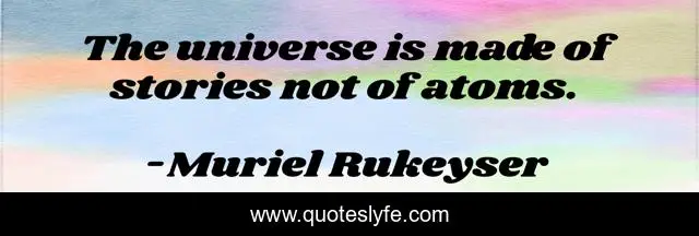 This page presents the quote "The universe is made of stories not of atoms.". Author of this quote is Muriel Rukeyser. .