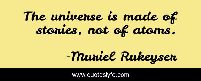 "Muriel Rukeyser Quotes." Quoteslyfe.com, 2025. Sat. 06 Dec. 2025. <https://www.quoteslyfe.com/quote/The-universe-is-made-of-stories-not-4019>.