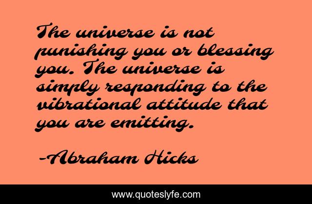 This page presents the quote "The universe is not punishing you or blessing you. The universe is simply responding to the vibrational attitude that you are emitting.". Author of this quote is Abraham Hicks. This quote is about universe, reality,.