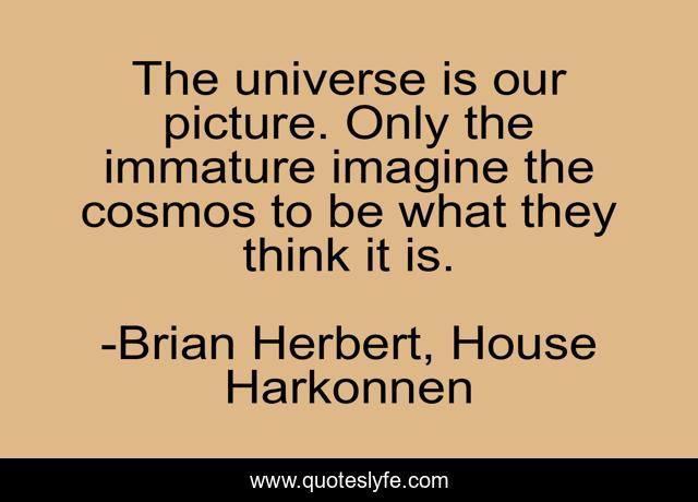 This page presents the quote "The universe is our picture. Only the immature imagine the cosmos to be what they think it is.". Author of this quote is Brian Herbert, House Harkonnen. .