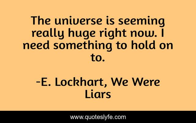 This page presents the quote "The universe is seeming really huge right now. I need something to hold on to.". Author of this quote is E. Lockhart, We Were Liars. .