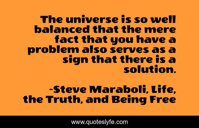 This page presents the quote "The universe is so well balanced that the mere fact that you have a problem also serves as a sign that there is a solution.". Author of this quote is Steve Maraboli, Life, the Truth, and Being Free. This quote is about life, universe, problems, solutions, inspirational, enthusiasm, change,.
