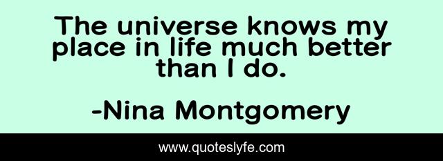 This page presents the quote "The universe knows my place in life much better than I do.". Author of this quote is Nina Montgomery. .