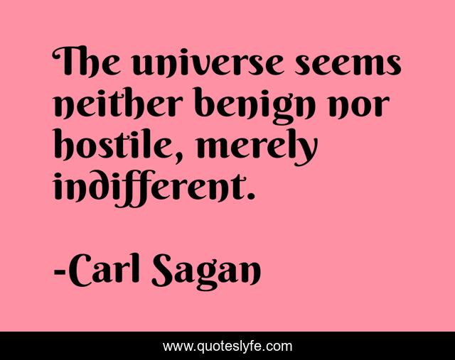 This page presents the quote "The universe seems neither benign nor hostile, merely indifferent.". Author of this quote is Carl Sagan. This quote is about universe, indifferent,.