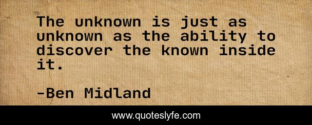 "Ben Midland Quotes." Quoteslyfe.com, 2025. Fri. 05 Dec. 2025. <https://www.quoteslyfe.com/quote/The-unknown-is-just-as-unknown-as-187925>.
