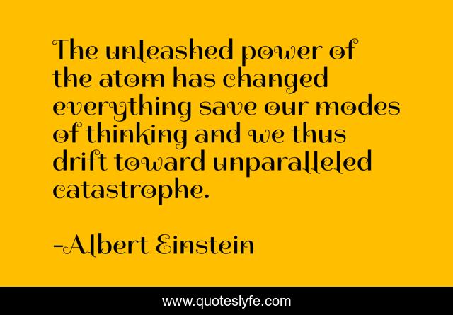 This page presents the quote "The unleashed power of the atom has changed everything save our modes of thinking and we thus drift toward unparalleled catastrophe.". Author of this quote is Albert Einstein. This quote is about thinking, everything, future,.