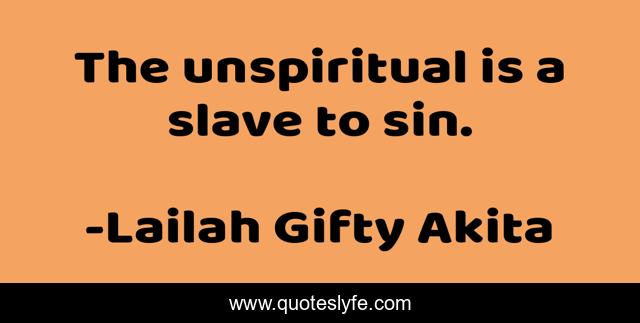 This page presents the quote "The unspiritual is a slave to sin.". Author of this quote is Lailah Gifty Akita. This quote is about sin, slave, christian-living, unspiritual,.