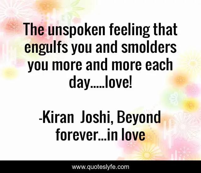 "Kiran Joshi, Beyond forever...in love Quotes." Quoteslyfe.com, 2025. Sun. 07 Dec. 2025. <https://www.quoteslyfe.com/quote/The-unspoken-feeling-that-engulfs-you-and-221693>.