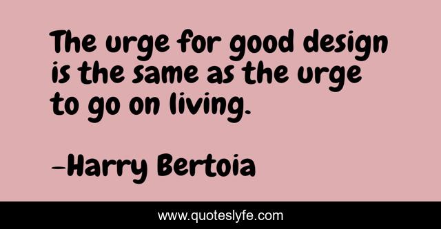 This page presents the quote "The urge for good design is the same as the urge to go on living.". Author of this quote is Harry Bertoia. This quote is about living, good, same,.