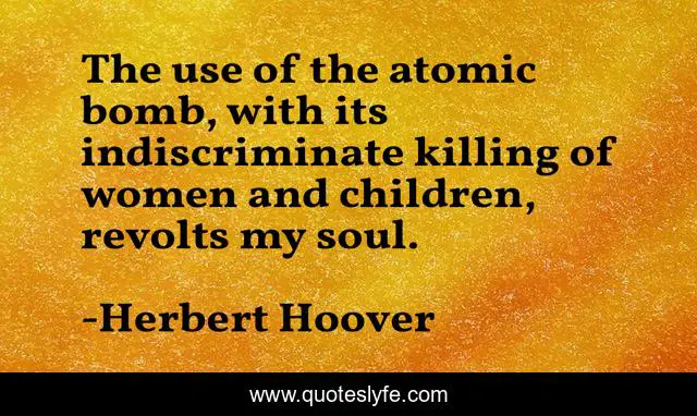 This page presents the quote "The use of the atomic bomb, with its indiscriminate killing of women and children, revolts my soul.". Author of this quote is Herbert Hoover. This quote is about my soul, children, soul,.