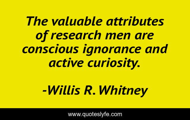 This page presents the quote "The valuable attributes of research men are conscious ignorance and active curiosity.". Author of this quote is Willis R. Whitney. This quote is about science, ignorance, valuable, research, curiosity, attributes,.