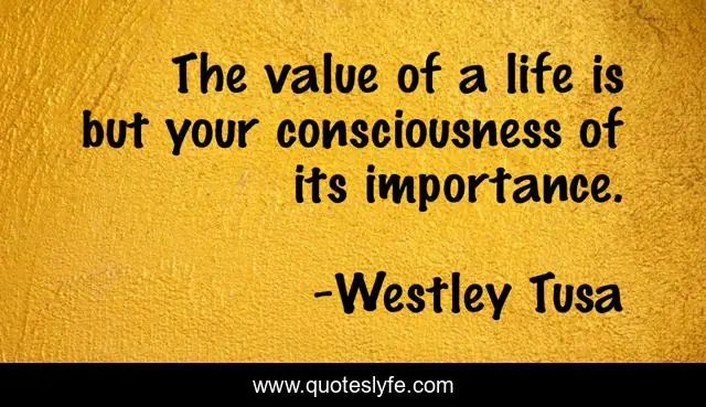 This page presents the quote "The value of a life is but your consciousness of its importance.". Author of this quote is Westley Tusa. .