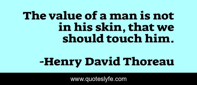 This page presents the quote "The value of a man is not in his skin, that we should touch him.". Author of this quote is Henry David Thoreau. This quote is about touch, value,.