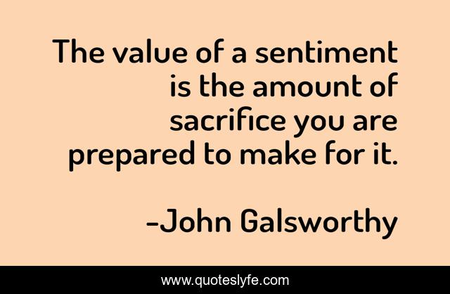 This page presents the quote "The value of a sentiment is the amount of sacrifice you are prepared to make for it.". Author of this quote is John Galsworthy. .