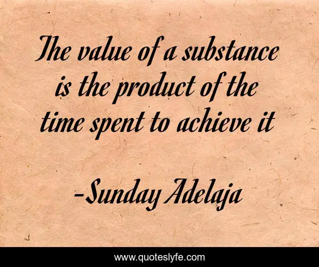 This page presents the quote "The value of a substance is the product of the time spent to achieve it". Author of this quote is Sunday Adelaja. This quote is about love, people, money, principles, employment, worship, celebrating-people, destiny, service,.
