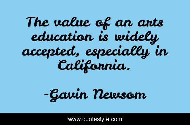 This page presents the quote "The value of an arts education is widely accepted, especially in California.". Author of this quote is Gavin Newsom. This quote is about arts, california, value,.