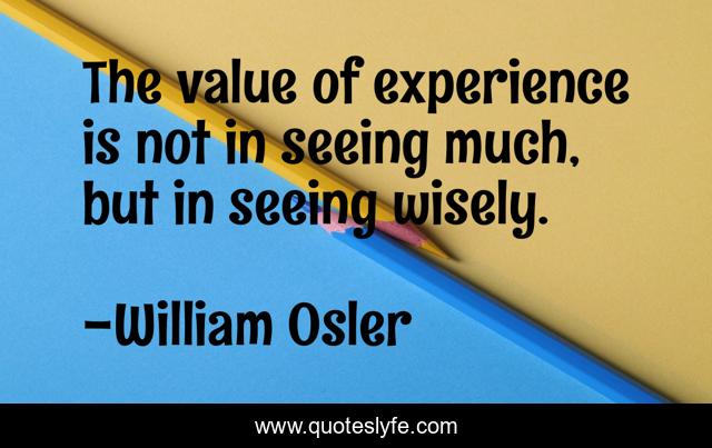 This page presents the quote "The value of experience is not in seeing much, but in seeing wisely.". Author of this quote is William Osler. This quote is about experience, wisdom,.