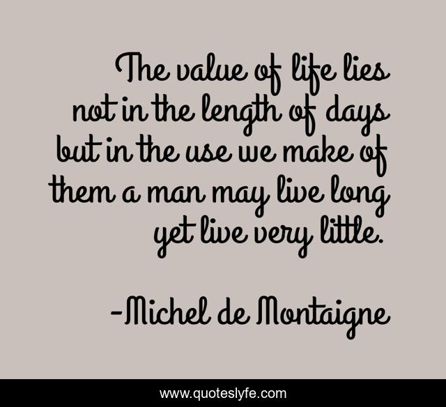 "Michel de Montaigne Quotes." Quoteslyfe.com, 2025. Sun. 07 Dec. 2025. <https://www.quoteslyfe.com/quote/The-value-of-life-lies-not-in-271967>.
