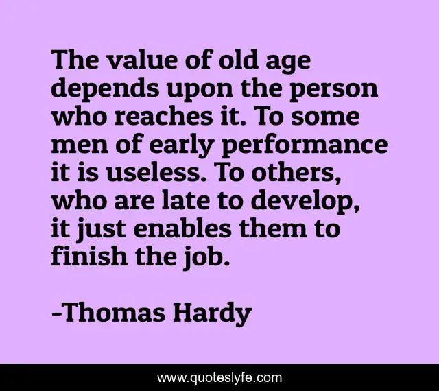 This page presents the quote "The value of old age depends upon the person who reaches it. To some men of early performance it is useless. To others, who are late to develop, it just enables them to finish the job.". Author of this quote is Thomas Hardy. This quote is about job, men, value,.